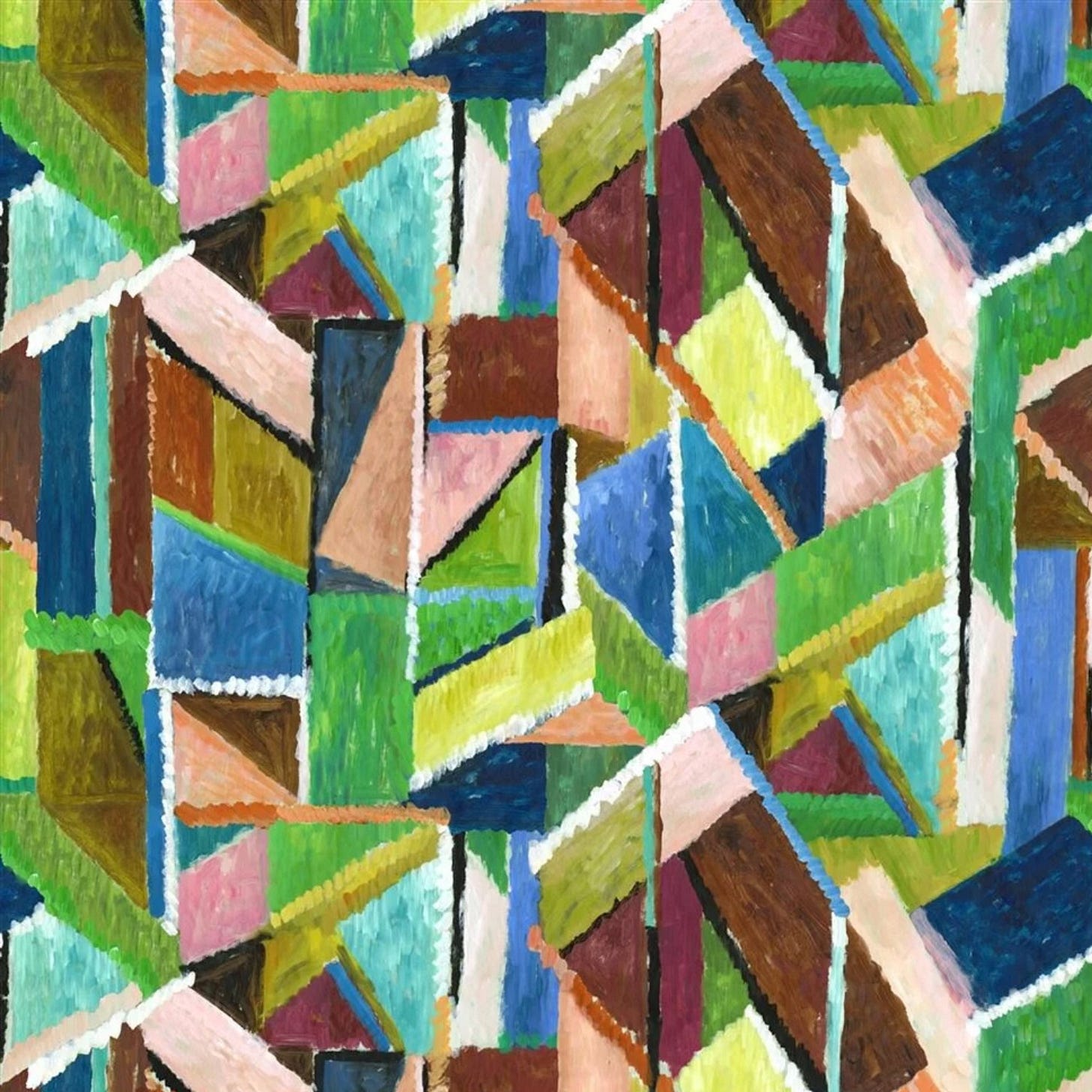 I love florals, but they don’t appeal to everyone or work for every project. Geometrics are always popular and can make a bold statement in a stitched project. I particularly like this print from the Designers Guild. Although formal, I like the ‘coloured-in’ feel of the design, giving it a softer edge, which appeals to me. It reminds me of an aerial photograph depicting fields. This colourway, Forest, has a vibrancy without being too overbearing.